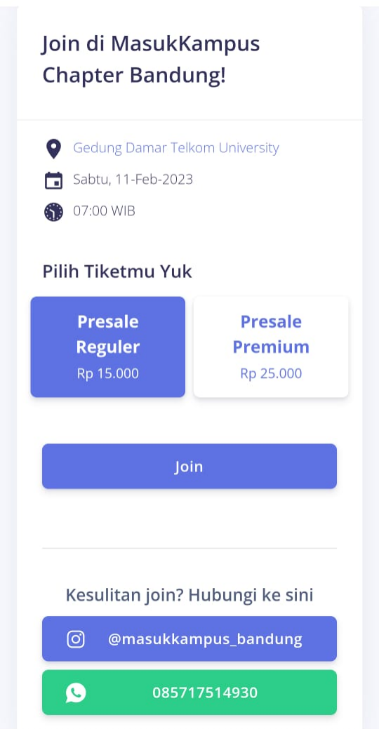 Setelah memilih tiket, klik tombol Join.