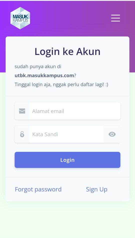 Klik Sign Up jika belum mempunyai akun MasukKampus.